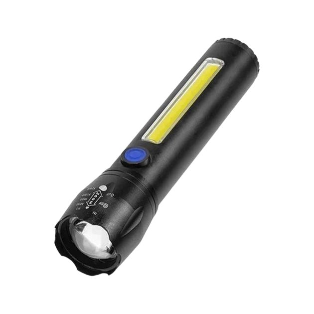 Малогабаритний металевий ліхтар MX-C83-COB з одним головним потужним світлодіодом і одним бічним COB-світлодіодом.